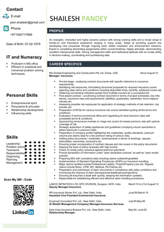Insurance And Risk Management Qualified With 13 Years Experience With International Exposure